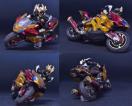 商品の状態はアギトの関節があまりにも動かずバイクに乗せにくかったので、首と胴の関節を改造しました。2枚目の写真は左から、直立・首前屈・胴の前屈になります。3枚目は上が無改造でのせた状態です。マシントルネイダーはシート部分の変形時に使うジョイントが破損したため改造したのと、スタンドも破損したため補修しています。またスライダー形態でアギトの足をタンクに固定するパーツがなかったため、自作しました。安定性は十分とは言えませんが、写真のポーズぐらいは可能です。アギトは箱も含めて、欠品はありませんが、トルネイダーは本体と、足固定パーツのみになります。