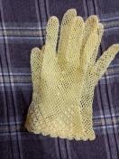 S 黄色の編み編み手袋になりますやります。左側の親指に染みがありますが、手にはめるとわかりません。クリーニング済みです。締切日時