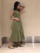 LilyBrownkhakiリリーブラウンシンプル切り替えドレスロングドレスワンピースフラワーレースタイトフレアハリツヤ光沢艶サテンスカラップレースボタンカーキグリーン緑