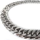 新品未使用これほどの太いネックレスはなかなかありません。貫禄です。見せびらかすのではなくポロシャツの内側からチラッと見えるのがおしゃれですね。他人がみるとプラチナかなと思う。あえてステンレスであることを言う必要はありません。きかれたらグラムだけ答えるとか金だと剥げてくるので、バレバレですがこれば微妙です。黒ずんでくるかと言えばステンレスなので、大丈夫かなとおもいます。