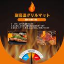 【くっつかないグリルマット】 粘着力が低くて平滑仕上げな高質シートで油あか、汚れなどを付着しにくい、表面温度の熱を均一なので食品を焦げ付きず、燃え上り、落下などを防げます。油が直接炭に落ちませんので煙が抑えられます。