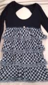 ネイビ-色のチエック柄の段々フリルが可愛い〜気に入って飾ってたが金欠のため出品〜今大流行のキラキラなビジュ-が華やか〜段々フリル&背あきがセクシ-でシンプルでBALANCe良いMixされた丁度良いお洒落なデザインですね(*^^*)締切日時