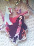 鬼滅の刃☆しのぶモチーフの缶ポーチ、スマホリング、ねずこのアクリルキーホルダーのB個セットです。おまけはマスクです。