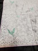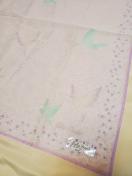 薄いラベンダーカラーに鳥と白い花柄。