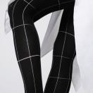 黒地にホワイトのラインが都会的な印象を与える、マイクロファイバー素材のタイツストッキングです。