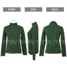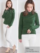 今年流行りのグリーンカラーなので、ベストや、ニット、トレーナー、カーディガンの下に着て首元を見せると暖かいですし、コーディネートのアクセントにもなります