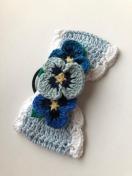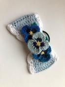 ラメ入りコットン糸で大きめリボンを編んで、ヘアゴムを作りました。