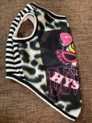 新品生地からのリメイクTシャツになります^_^背中はフリース生地、お腹は伸縮性のある生地になります!