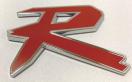 R プラスチックエンブレムです。 ドレスアップのワンポイントとしていかがでしょうか。 貼るだけでスポーティに決まります。アイディアで色々なところにどうぞ。