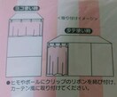*ヒモやポールにクリップのリボンを結び付け、カーテン風に取り付けて下さい。