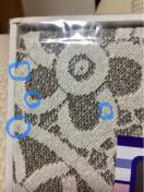 難→未開封ですが保管中の湿気染みが点々と見てとれます。使用による汚れではないので、お洗濯で落ちると思いますが、気になればおやめ下さい。