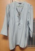 CUCClA(クッチャ)の、光沢あるスモーキーでくすんだグレーブルー(水色)の丈長めのチュニック