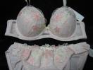 サラサラスベスベ素材のライトピン区にフラワー刺繍使い、ブラセンターはリボンとアクセサリーのデザイン、ストラップとパッドの取りはずしが可能、サイズ アンダーバスト70 バスト 88 ヒップ 87〜95 素材 ポリエステル ナイロン その他 新品でお届けいたします。