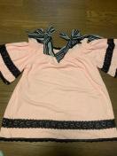 オフショルにして、肩でストライプのシフォンの紐を結ぶようになっています!