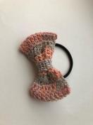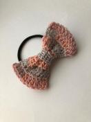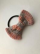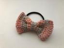 コットンミックス糸でリボンを編んで、ヘアゴムを作りました。