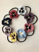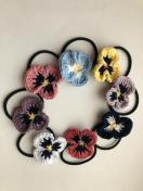 色とりどりのパンジーのヘアゴムできました♪