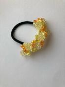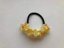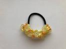こんぺいとうビーズとキラキラビーズを盛り盛り編み込んで、ヘアゴムを作りました。