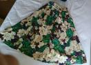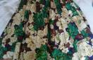 緑 茶 白 花柄 ボタニカルプリント ひざ下フレアースカート