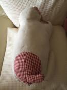ハンドメイドコーナーのある布団店で家族が購入し、ビニール袋のまま棚に、ずっとあったので、飾っているぬいぐるみかと思っていましたが、ちょっと寝そべってテレビを見たりする時用の、まくらだそうです。