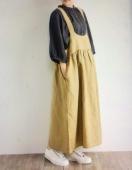 上質リネンの風合いと色合いが素敵な 大人可愛いデザインのサロペットスカートです♪