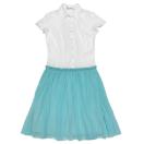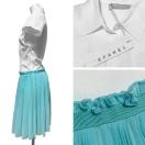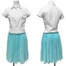 白とブルーが爽やかで清楚できちんとした印象のステファネルのワンピース。コットンオックスフォード生地とシフォンプリーツの異素材コンピがお洒落!