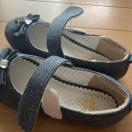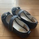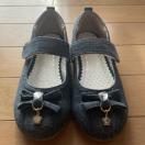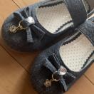 キラキラデニム地のストラップシューズ 女の子 リボン付