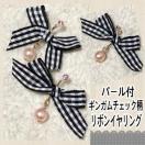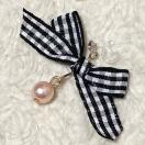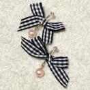 モノトーンのギンガムチェック柄リボンに淡いピンクのパールが揺れてとっても可愛い(^^)