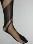 色がわかりにくいのですが、画像2,3のように黒の生地の組み合わせになっています。タイツ自体の厚さは全体として薄めで、濃い黒のほうでも透け感があります