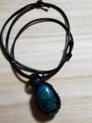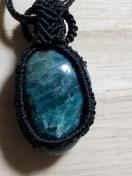 アパタイトのタンブルを使用したマクラメ編みペンダントです。ルースと違い厚みがあります。