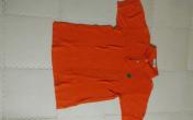 速乾性があります。サイズはXLです。着丈66,肩幅48、身幅55,袖丈22、襟の高さ5センチ、右袖に1センチの引っかき傷が2個所あります。オレンジ色ってなんか良いですよね。