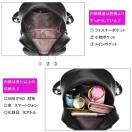 【便利な収納力】外部にフロントポケットが一つ、後ろにファスナーポケットも一つあり、小物を収納しやすいです。内部はメインポケットと小物ポケットを合理的に配置しているので、化粧品、財布など別々に収納でき、物をきれいに整理整頓します。
