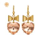 クリスタルガラスのハートドロップとマットゴールドのリボンが可愛らしいトリーバーチのピアス。