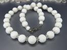 天然石マザーオブパール蓮の花彫り10mm水晶ボタンネックレス母性愛
