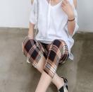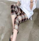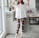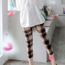 送料無料 レディース 7分丈 レギンス チェック柄 コーヒー×ブラック