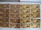 AA000000AAの純金鍍金カラー渋沢栄一壱万円札10枚、GOLD7連の純金鍍金カラー福沢諭吉壱万円札5枚、GOLD8連の純金鍍金カラー福沢諭吉8億円札5枚、で計20枚です。