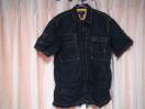 バズビーンの麻で黒の半袖ドレスシャツです。