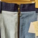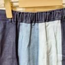 ウエストは後ろ側ゴム、フロントジップ。ポケット両サイドにあり。縦ラインにパッチワークされているので細見え効果あります。締切日時