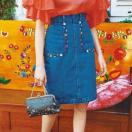エキゾチックなメキシコ刺繍で飾り付けた、女性らしさあふれるデニムスカート。