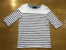 五分袖カットソー。袖を折って頂くと半袖になりサックスブルーの裏地が覗くようなオシャレなデザインになっております(^^)