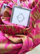 またありそうでなかなかない光沢感がございますので濃いめなベージュがゴールドに近い華やかなゴージャスなお色に濃いピンク花柄が映えます。