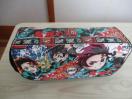 キャラクターは竈門 炭治郎で、高さ10cm、マチ幅6cm、長さ約21cm程度です。マジックテープカバーで、チャック開閉2ヵ所です。合皮地プリントなので、プリントが鮮明です。