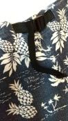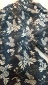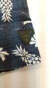 綿素材ですが、麻のような風合いの生地が柄と共に夏らしい雰囲気漂うハンパ丈パンツ。ウエストのベルトはフェイクになります。後ろ側のみゴム入りで、ストレスフリーに履いていただけます。ヤシの木やパイナップル柄が味のあるネイビーの色合いと相まって素敵な仕上がりです(*^^*)