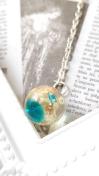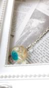 球体に貝殻とパールと星の砂を入れました。下には海をイメージして、水色の色を着けました。