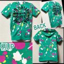 グリーン地にペンキを飛ばした様なカラフルなペイント柄が派手カワ☆