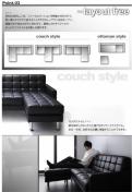 光沢感のあるレザーで構成された、モダンデザインソファ。