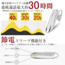 日本語音声による音声ガイドで着信、ラストナンバーリダイヤル、ペアリング状況やバッテリー消費状況のお知らせ機能があり、簡単に操作できます。【超大容量バッテリー 】260mAh 超大容量バッテリー内蔵により、30時間通話可能,40日間の待機時間,脅威の長時間使用が可能。Bluetoothイヤホンの電力不足を有効的に解決したことで、音楽や通話を束縛することはありません。