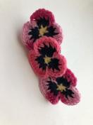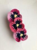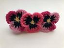 ピンク系のパンジーを編んでバレッタを作りました♪