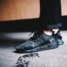 90年代のランニングシューズにインスパイアを受けたモデルをベースにブラックフライデーを記念し作られたリミテッドエディション。快適なクッション性とピクセルニットのアッパー。人気の通称「トリプルブラック」カラーで登場。