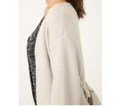 ふわふわなファーが付いたきれいめニットカーデ。コーデに取り入れやすい綺麗めな表面感と、裏面にはふわふわなシャギー素材で編んでいるので、肌触りの良い素材感もこだわりのポイントです。