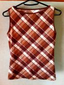 商品説明アンサンブル カーディガン + タンクトップ 茶色 チェック ブラウン 5分袖 トップス 羽織り レディース コーディネート カットソー 洋服
